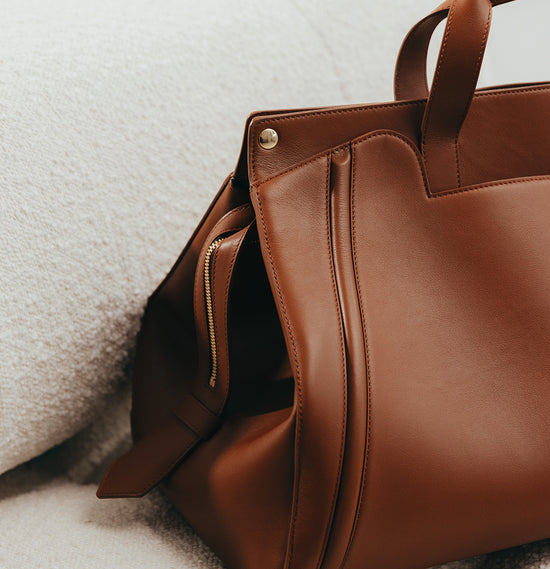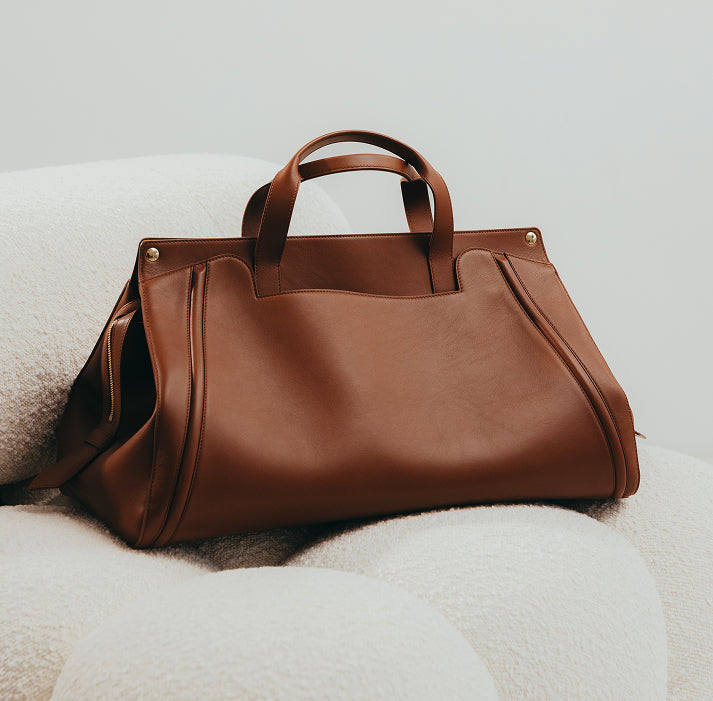 Crafted by leather artisans in Ubrique, Spain. This town has been producing leather goods since the 19th Century. This modern duffle offers a clean, refined silhouette with ample space for everyday essentials, a seamless blend of style and practicality.